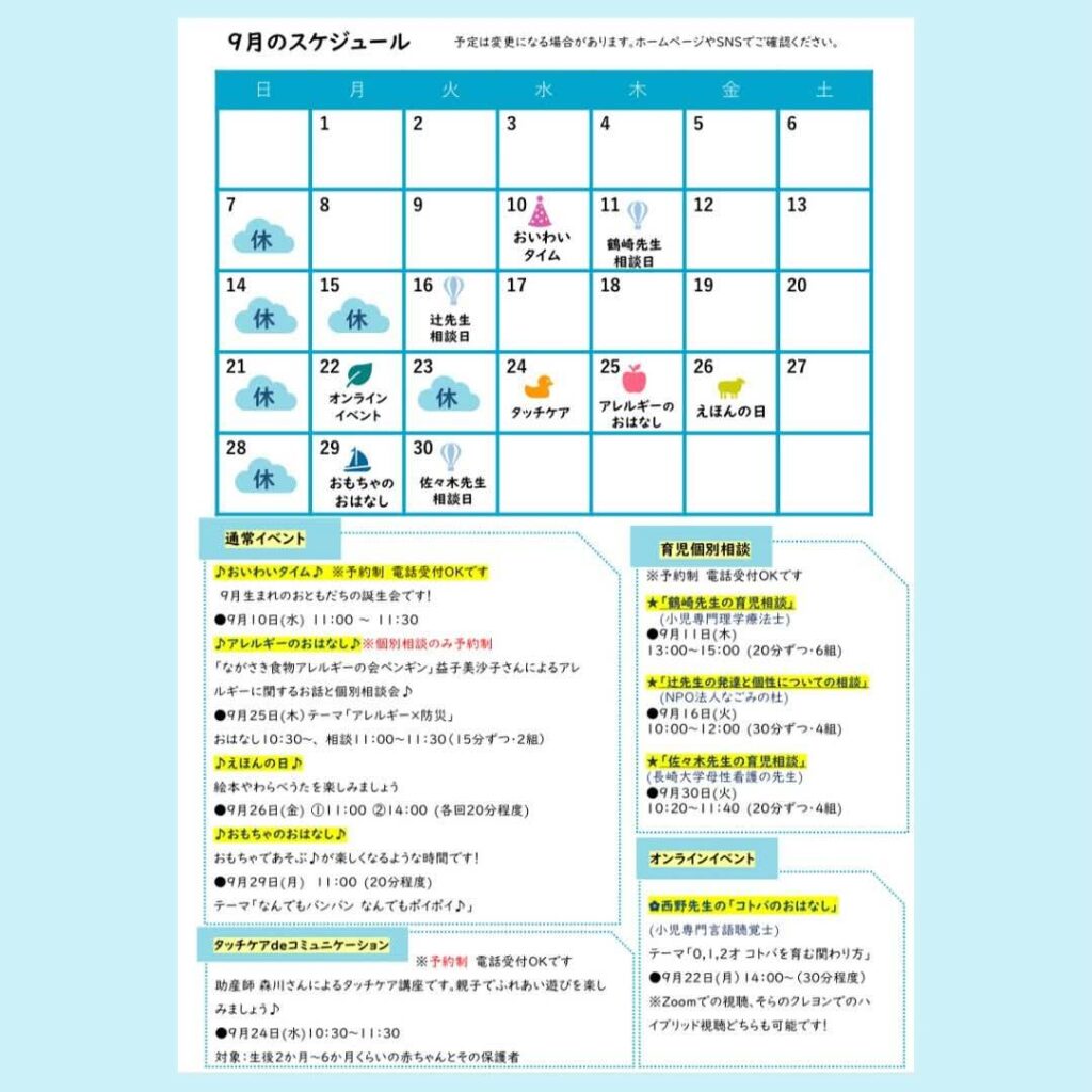 そらのクレヨン9月のスケジュール