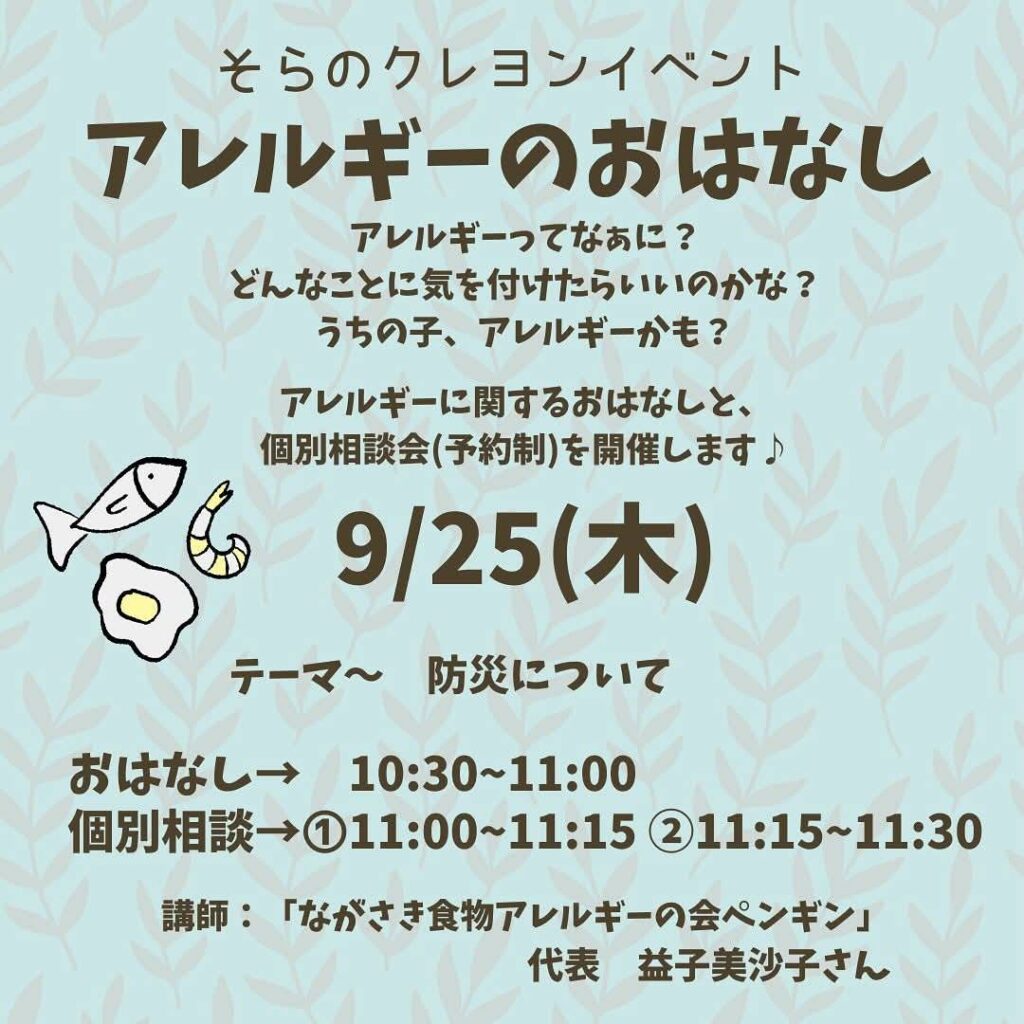 アレルギーに関するおはなしと個別相談会♪