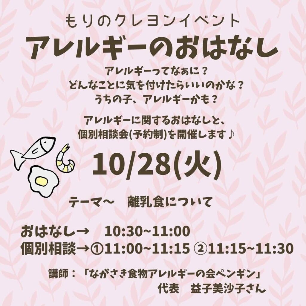 アレルギーに関するおはなしと、個別相談(予約制)です。