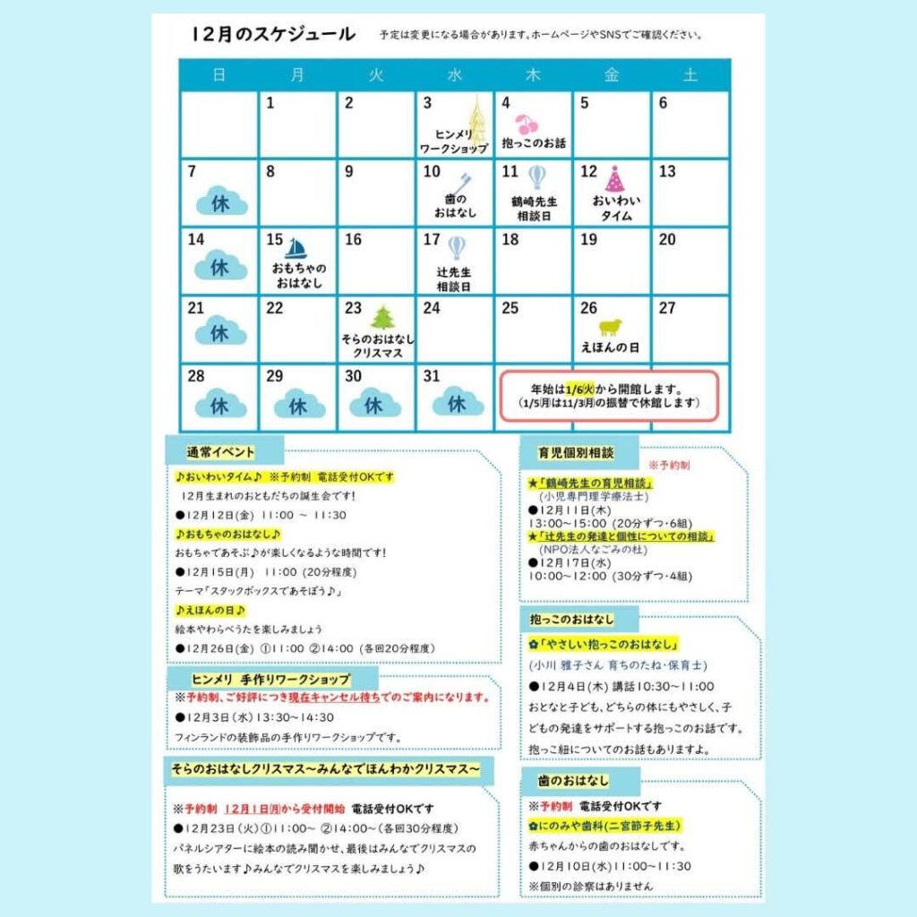 そらのクレヨン12月のスケジュール