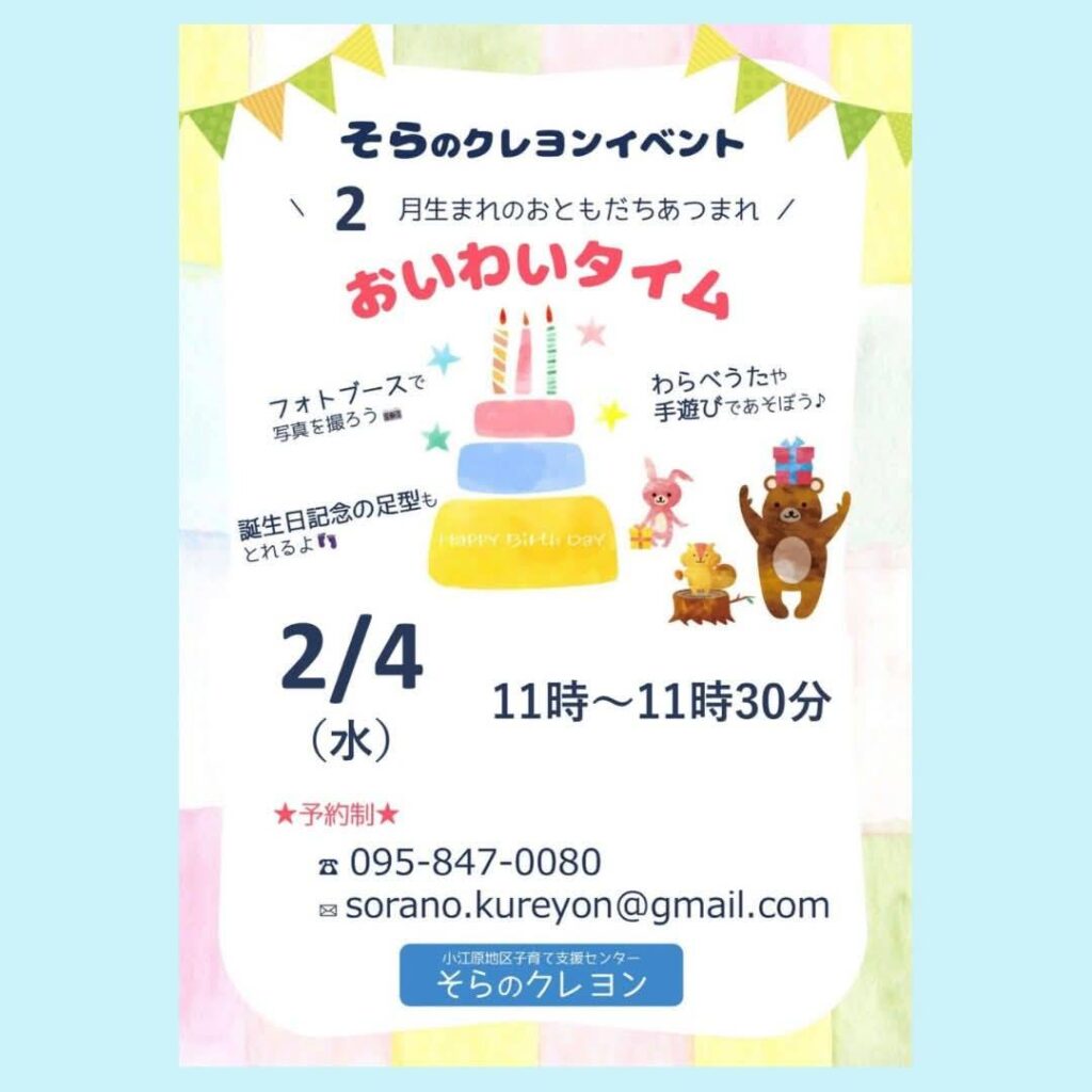 ⚠️当日10時以降のキャンセル連絡は、直接そらのクレヨン0958470080へお電話ください。