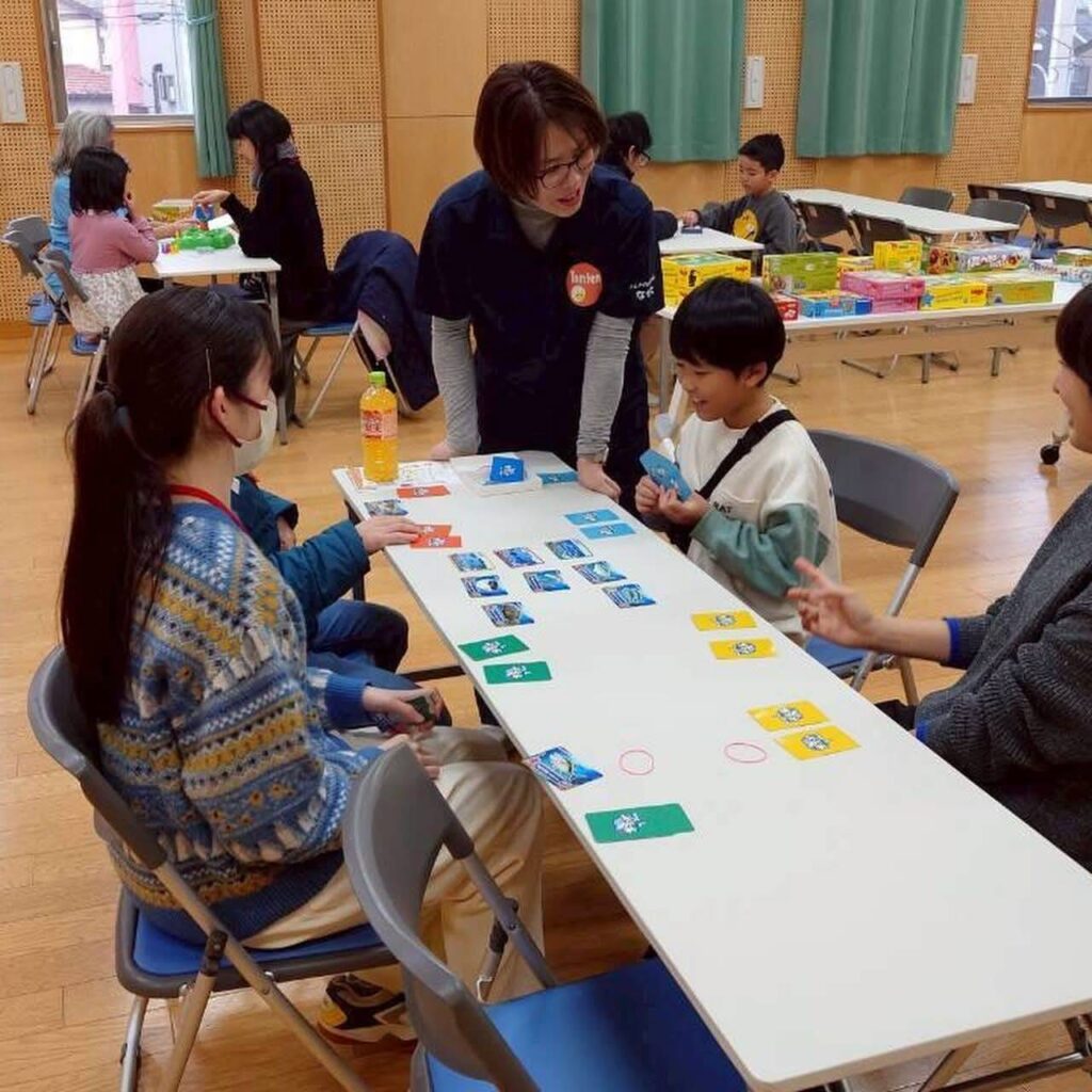 トムテゲームひろばは、とってもカラフルで、ルールも簡単なものから難しいものまで、たくさんのボードゲームを用意しています。
