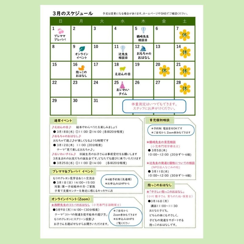 もりのクレヨン3月のスケジュール