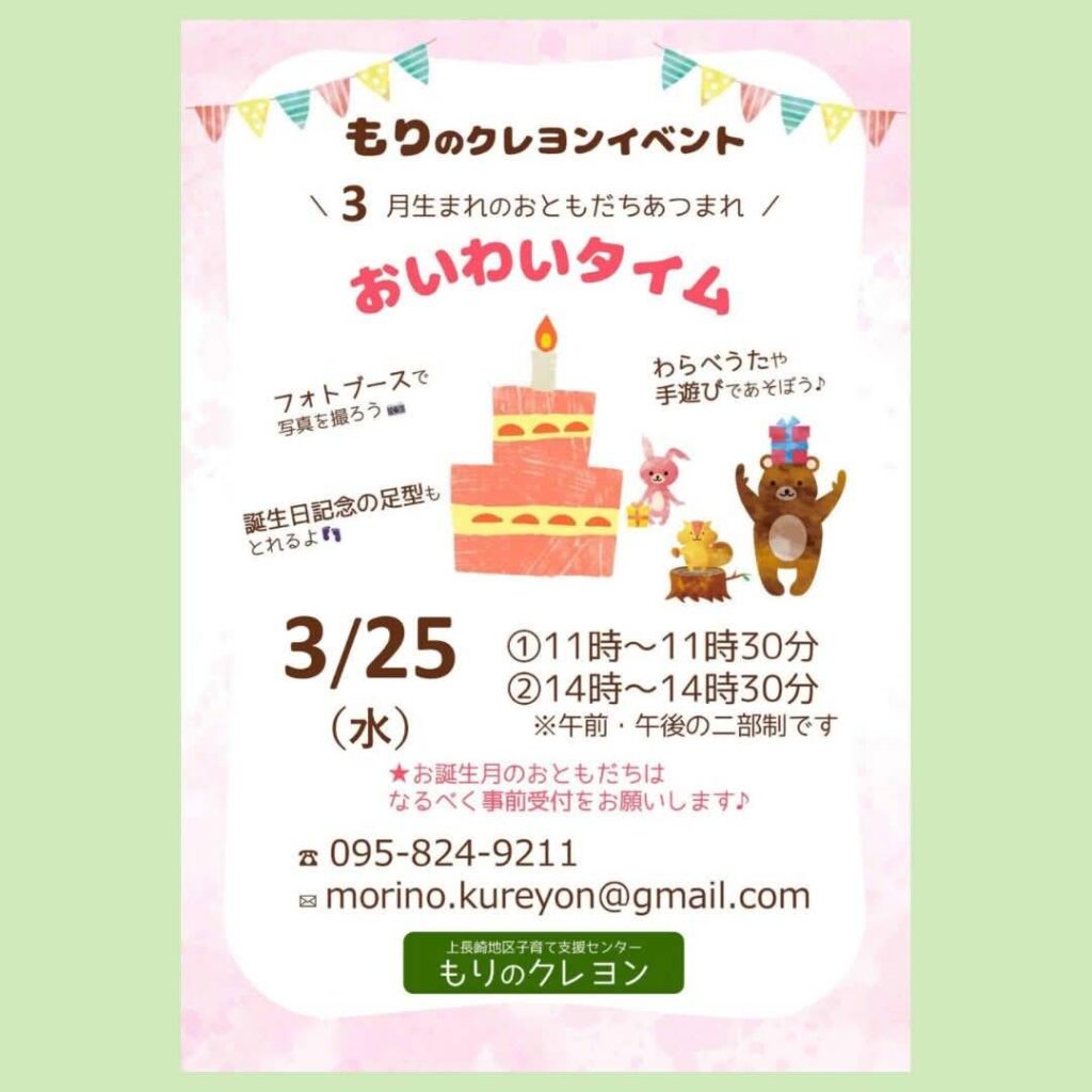 ※誕生月のおともだちはなるべく事前受付をお願いします♪